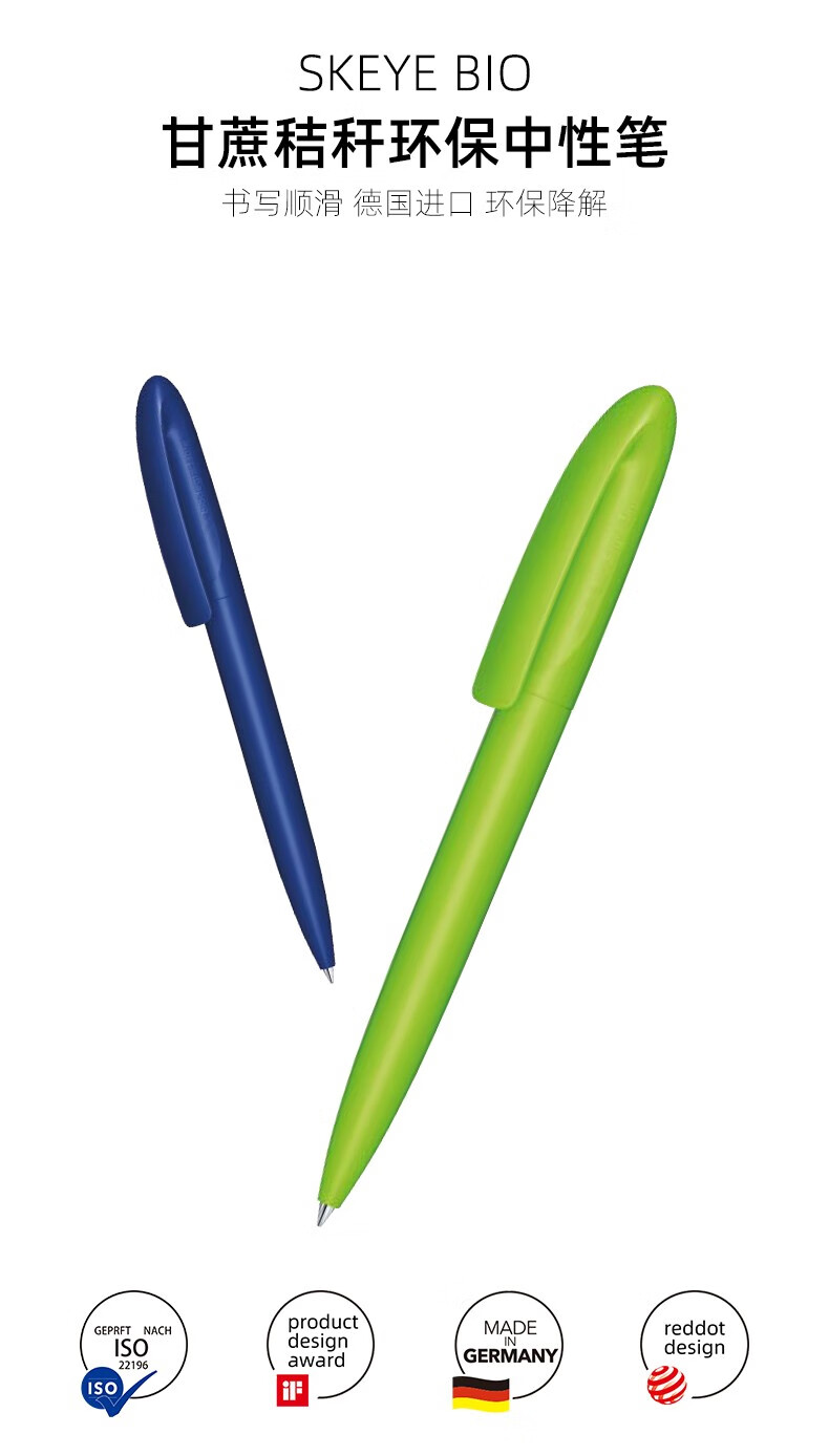 甘蔗旋转德国环保可降解办公签字笔水笔碳素笔 企业礼品定制