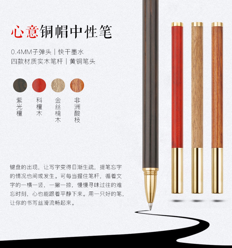 红木质签字笔金属黄铜中性笔高端笔送人礼物刻logo 伴手礼定制