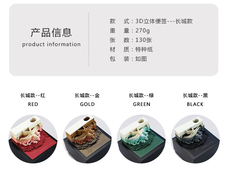 3D立体模型便签本便利贴建筑模型纸雕 长城3D 礼品定制