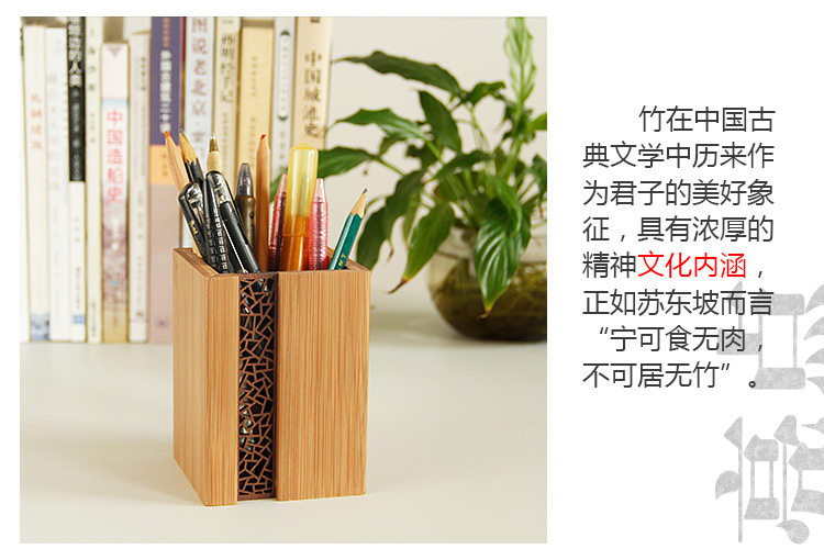 笔筒定制LOGO 木质办公复古竹文具校庆 纪念品定制