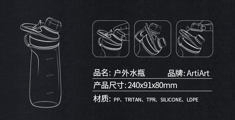 artiart运动水壶水杯塑料水杯大容量户外运动便携水杯 礼品定制