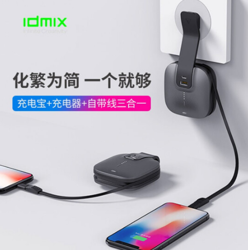 IDMIX 移动电源自带插头充电宝自带线三合一旅充充电器