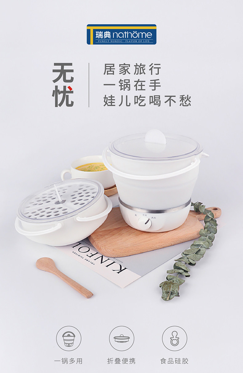 北欧欧慕折叠电煮锅旅行便携式电火锅携带方便 礼品定制