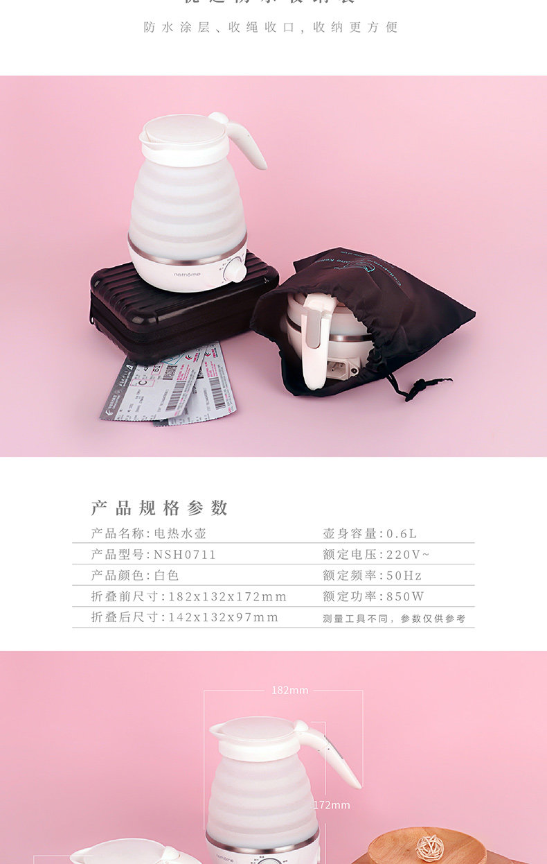 北欧欧慕NSH0711旅行电热水壶折叠水壶便携水壶 礼品定制